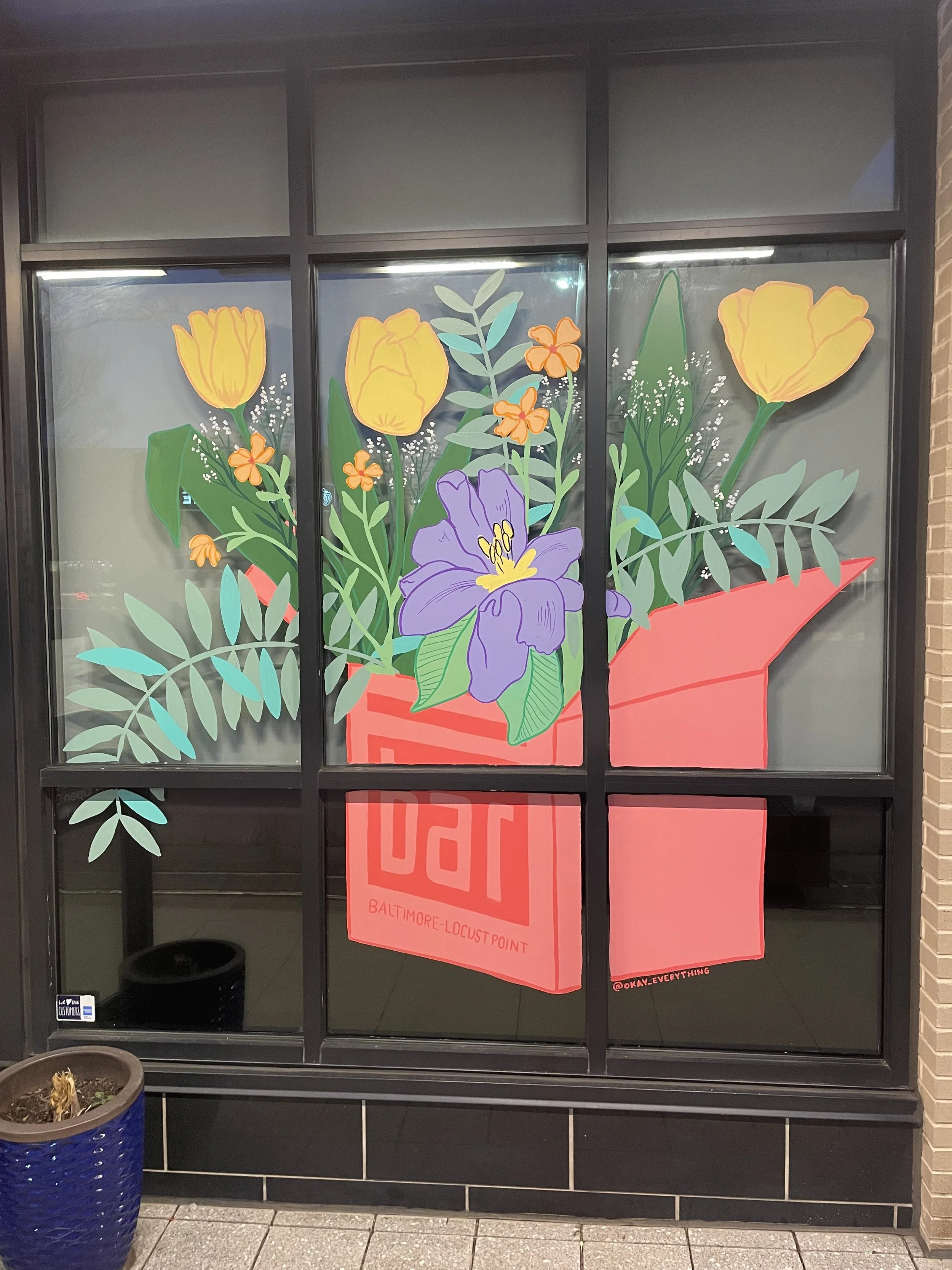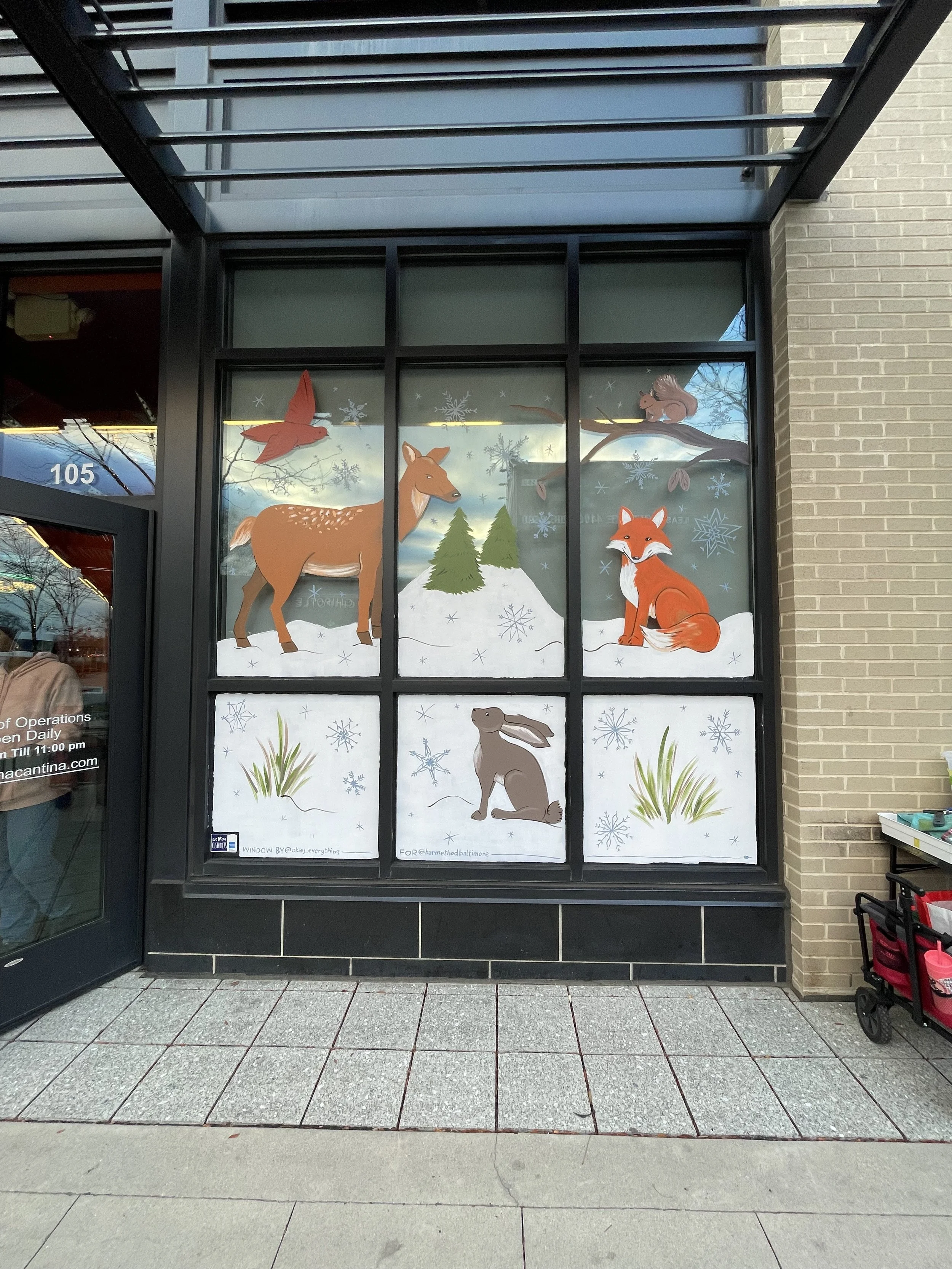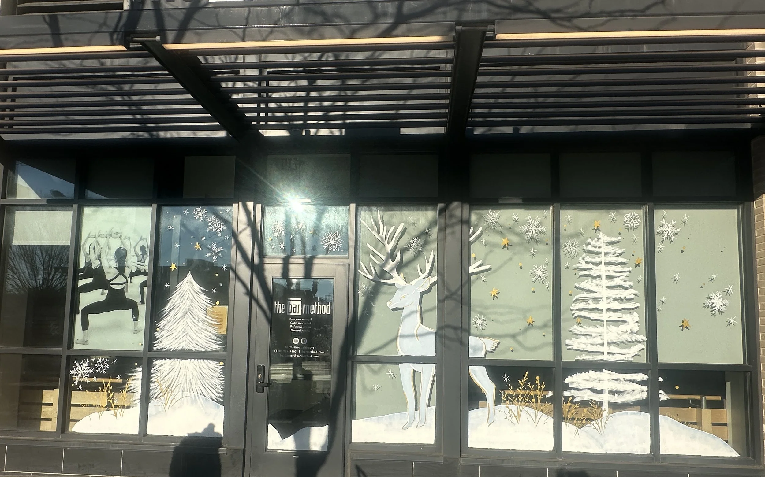 Bar Method began as a seasonal window client in 2023, and then added a second window during the year, and then a third! They now get three different window installations each year. With heavy foot traffic in the Locust Point neighborhood, these windows are designed to be striking both from walkers and drivers passing by.